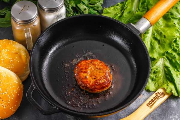 Дайте котлетам пожариться пару минут на сильном огне, чтобы образовалась аппетитная корочка. Потом убавьте огонь до среднего.